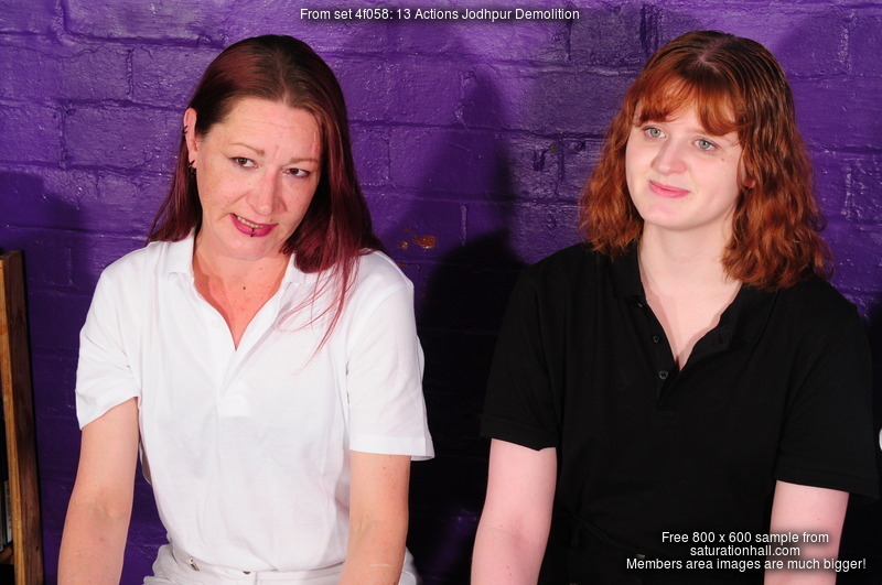 Miss Abigail and Fidelity hose each other down in the dungeon