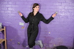 Maximum messy play in leatherlook and high fashion jumpsuits
