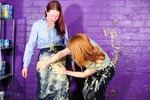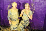 both girls are utterly drenched in mess from head to toe, shoes wrecked,