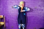 They've deliberately dressed for their impending messing, in sportswear that will really show the effects as the gloop is poured on and in, but still look good clean, and great messy! Lady Jennifer wears an entirely matching full tracksuit in turquoise with pink details and a purple hood, which exactly matches her purple hair. She wears black and white trainers. Honeysuckle wears red tracksuit trousers with a black tracksuit jacket, and black converse-style basketball boots. They both wear swimsuits under their tracksuits, and know they'll be having those filled, soon enough!