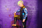 And to finish, a full savoury soup shampoo through her spectacular bright yellow hair.
