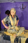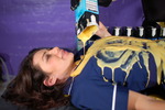Lucinda has custard poured onto and spread over her entire uniform, front and back, has her shoes filled and her feet coated, and finally received a complete gunge shampoo and facial.