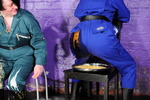 Needless to say both women get totally drenched from head to foot in mixed mess, this set includes clothes filling, tray sitting, stuff poured all over each other, and messy shampooing.
