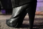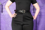 Dressed in a very smart black formal jumpsuit, with a black leather belt and black leather high heels, and with her vibrant red hair, Rosemary is about to treat herself to a serious mixed-mess messover in the dungeon.