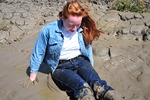 Take two lovely young women dressed in the American classic of blue jeans, plain white t-shirts, and blue denim jackets, add classic British wellington boots, and on a gloriously sunny day, send them into the mudbanks of finest Avon clay to completely cover themselves and each other in as much rich brown mud as possible!