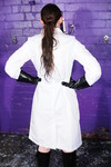 Doctor Chastity, wearing her white lab coat and huge black rubber gauntlets, demonstrates a new method of defending the estate from intruders using water triffids. No-one is entirely sure what these are or do, but Doctor Chastity gets totally drenched in the process!