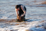 Then the two women enter the sea proper, playing and splashing in the surf as the waves come ashore, both getting entertainingly slapped by the water in places. Wendy washes the mud off her dress in the seawater, and she and Evelyne play and frolic in the waves of the incoming tide.