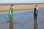 As Winter descends once more on Langstonedale, here is a reminder of Summers past, Nurse Wendy in full uniform, with a little help from Evelyne in her PVC catsuit bathing costume, playing in the water, and a little mud, of one our favourite East Coast beaches, away south of Marsh House, where miles of unspoilt sand, with mudpools revealed at low tide, stretch into the endless distance.