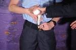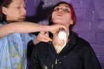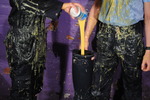 There's a separate wash-off hosedown video, in which they first wash all the mess off each other with the running hose, and then strip down to the plain black swimsuits they are wearing as underwear before thoroughly shampooing and washing each other's hair.