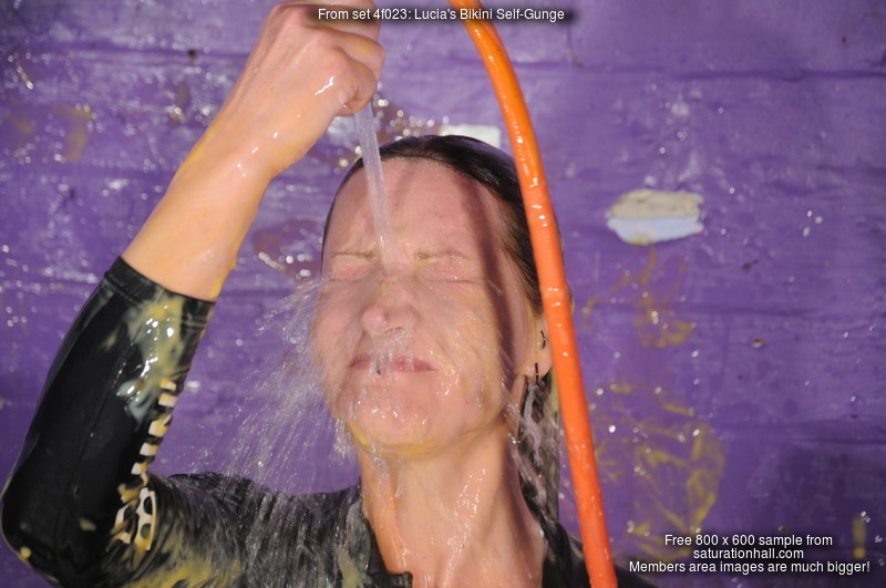 With this scene you get the full messy video, a separate hose-down wash-off video, and over 300 high res photos shot up close and personal using a 200mm lens to really focus in on the detail as Lucia mercilessly drenches her clothes and herself in mixed mess.