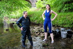 Evelyne the cook dons her green boilersuit and blue wellies, takes a seat on a stool in the river, and then has loads of buckets of water thrown over her by Chastity the Head Gardener, who's dressed in a tight fitting, figure-hugging sporty all-in-one herself.