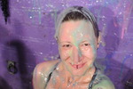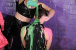 What follows involves clothes filling, sitting in trays of goo, pouring gunge all over each other, standing in buckets of goo and being covered, shoe-filling, and finally pouring buckets of gunge over their heads. All three girls are reduced to technicolour gunge-drenched messes. Gunge colours used are blue, green, and pink, and they have lots and lots of it to play with!