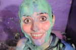 A week past Beltaine 2007, Summer is with us, and Maiden takes to the mud! Following Lady Jasmine's advice, Maiden dresses smartly in a perfect student barmaid's outfit, and gleefully throws herself into the thick sloppy clay of one of Lady-J's favourite riverbank mudspots. Having first leapt feet-first into the sloppiest spot she could find, Maiden proceeds to kneel down, crawl through the mud, lie down, and smears liquid clay all over her entire outfit.