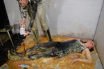Both Rosemary as the strict mistress and Felicity as the submissive stay in character most of the way through the scene, emerging to hugs and laughter for the last few minutes, by which point they are both fully covered in gunge.