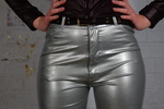 Genuine American Apparel disco pants, designed, cut, and sewn in Los Angeles, California, USA. The original and spectacurlarly sexy high waist figure shaping shiny fabric pants. What could be better to be comprehensively gunged in?