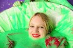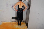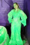 Rosemary lies back in the dungeon's tin bath, relaxing for a moment, when Felicity strikes, a full bucket of thick green gunge dumped straight into Rosemary's middle, drenching the beautiful wedding dress in a tide of green all over her front and down between her legs, pressing the skirt of the dress down as it flows. For just a moment Rosemary is outraged, but then she starts to feel the lovely wetness of the gunge coming through her dress, and just gives herself to the moment, enjoying the sensations as Felicity brings another bucket and continues the green slime destruction of Rosemary's dress.