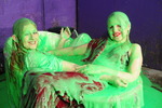 Eventually they swap places, Felicity settling back into the green slime bath in her still clean red dress, and letting Rosemary gunge her just as completely as she has already gunged the bride.