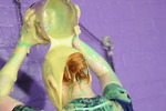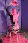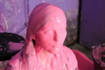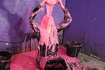 Later on she adds bright pink gunge to the mix, steadily getting messier and messier, her leotard and jacket get the treatment, her boots get taken off, filled, and put back on, and ultimately her hair and face get the full treatment too, until she's an unrecognisable gunged blob, totally coated from head to toe in custard and cream and pink gunge.