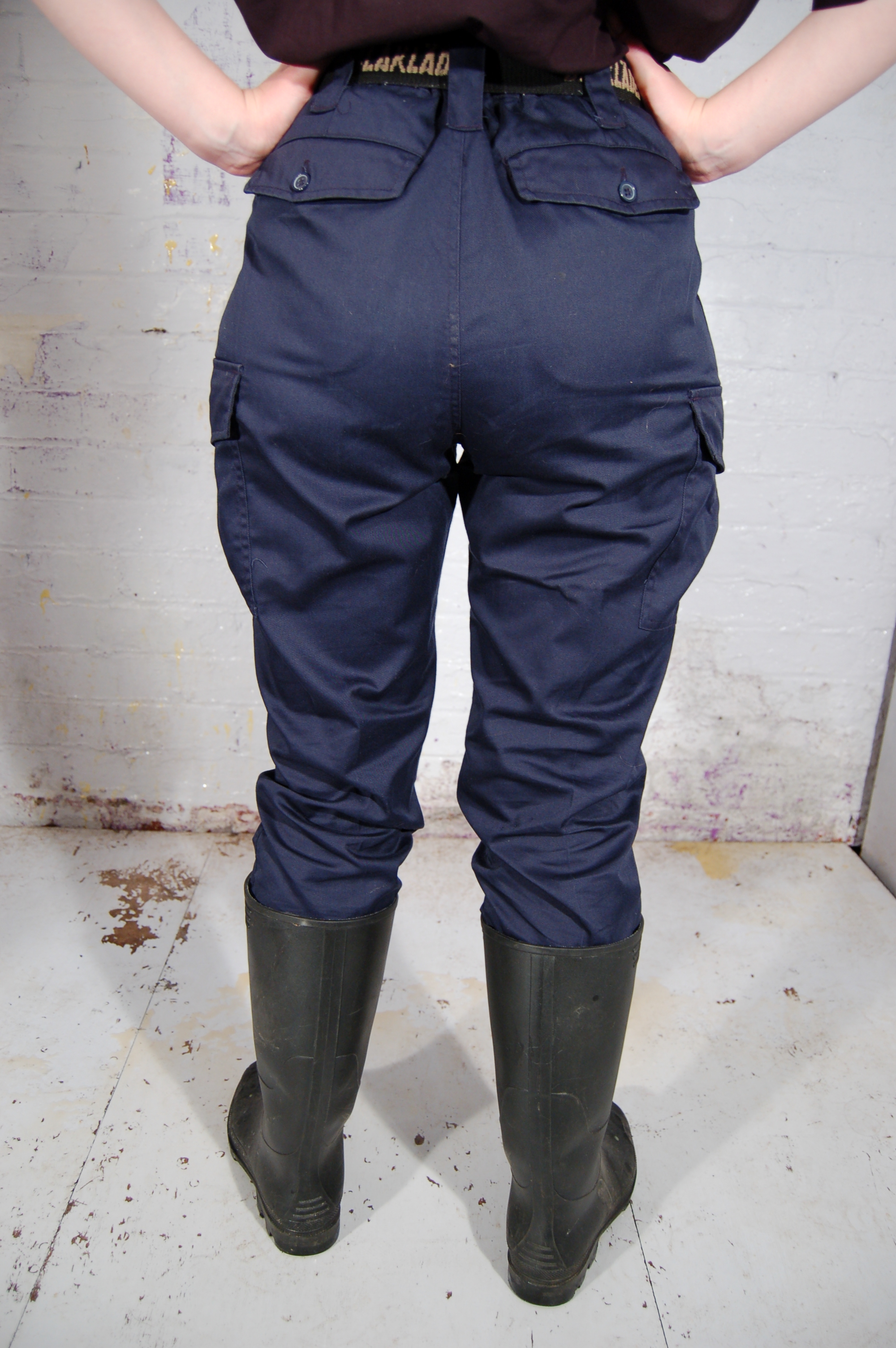 Dressed in dark blue combats, black wellies, and a baggy black short-sleeved shirt, Chastity has her entire outfit comprehensively filled and then covered in goo, at the hands of Lady A.