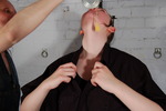 This set also includes Chastity removing her skirt again, walking on it in the pool of gunge on the floor, then putting it back on, and her hat being taken off her, gunged, and put back on several times, plus having her hair and pigtails thoroughly shampooed with both syrup and custard. And once she's been totally and completely gunged, we also get to see the hose-down, delivered by Maude.