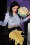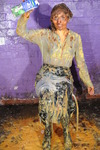She also pies herself, dunks her head in a bucket of custard, and pours lots of it over herself, gradually getting more and more covered and soaked as the scene progresses.