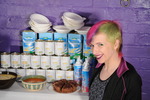 Maude wears long denim dungarees over a white t-shirt, and Converse boots, Teena is in denim shortalls over a white t-shirt, and blue and white stripey wellies, while Lucia is dressed in high waist dark denim blue jeans, white t-shirt, dark denim jacket, and sparkly wellies. And all three have agreed to submit to the ancient 'Savoury Sacrifice', where one of their number will get a bit messy, and then she gets to select who is next, until all the supplies are used and all three have been reduced to wet and sloppy savoury ruin.