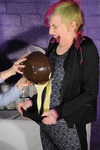 To finish, theyh give each other full head dunkings in buckets of porridge, and then Penny pours a bucket of porridge over Honeysuckle's head while she's bent over the bucket she just dunked in. They also empty the contents of their wellies over each other. This was the first time Honeysuckle had ever done a head dunking, and she quite enjoyed it!