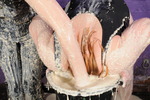 Lots of dress filling, boots filling and covering, dress drenching, and a full messy shampoo and messy facial too.