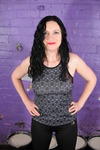 - Black figure-fitting t-shirt