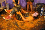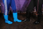 Before the clothes filling starts They also fill each other's wellies, and after the mess is poured in they pulls one now messy bare foot out of the welles and have even more porridge poured over their feet before sliding them back down into the mess-filled darkness of their boots.