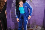 Honeysuckle wears a beautiful classic royal blue Adidas track suit, over a turquoise swimsuit, and with wellies that match her swimsuit. Maude wears a sleeveless Nike sports catsuit over a black swimsuit, with sparkly wellies.