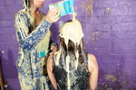 This was a custom scene for a customer who really likes our hair gungings - almost all of our scenes have the girls shampooing mess into their hair, which is probably something we should promote more - and the customer specified that after messing each other's clothes up in the intro, the main part of the scene should involve lots of pies in the face, and smeared up onto their heads and into their hair. They also specified that one of the girls should receive a supprise extra pie in the face after she'd been hosed down, which we did (and the girls were happy to do). Watch the videos to see who got some extra pie!