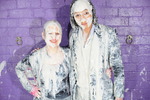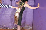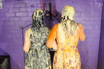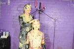 Maria, in a beautiful, brand new, white and pink 50s-style rockabilly dress, and Honeysuckle, in a very Gothic black and white dress, play scissors-paper-stone, with the winner getting to fill the loser's dress with mixed mess on each round. They have custard and soup to play with, and gradually reduce each other to messy ruin as the turns progress.