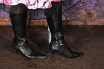 Lucia's boots get well filled while she is wearing them, and Honeysucle has her shoes taken off, filled, one with cream, one with soup, and then puts her pantyhose-clad feet back into them.