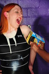 Maiden the Slave Girl, in a Tesco uniform dress, takes on The Pink Pourer!