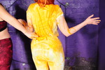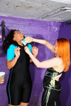 Lily stays clean and dry all thriugh the therapy session, but needless to say in this house that state of affairs cannot be allowed to continue, and so Lily takes her place in the centre of the dungeon, and allows the cream-drenched Felicity to well and truly get her own back. Lily's lovely unitard is soon filled and covered, and then with both of them well messed up, they take turns throwing even more Devon Dream all over each other, before taking turns to finally pour multiple full pots over each other's hair, until they are both coated from head to toe.