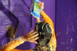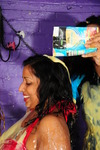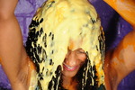 And then it's shampoo time, and that glorious red hair soon starts to suffer too, as Rosemary throroughly shampoos custard and cream all through her hair, and pours it all over her face too.