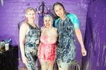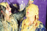 An all-out gunge frenzy follows, with pies to faces, bottoms, chests, and heads, more clothes filling, a complete messy shampoo for both girls, ending in both of them monumentally messed up from head to toe, drenched in mess, and posing for the camera, messy bottoms pressed together.