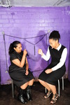 Dressed in smart officewear, Teena and Friday play Scisors, Paper, Stone, with consequences! Teena wears a lovely black dress with black leather calf-high boots, while Friday wears a smart black pinstripe knee-length skirt, white shirt and black jumper, with strappy black shoes, and at each round the winner gets to do something unspeakably messy to the loosers's outfit or hair.