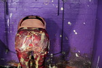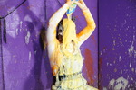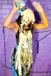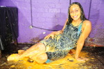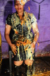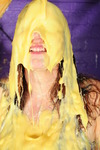 Eventually the questions end and Maria just grabs all the remaining mess and pours and smears it all over herself, covering her hair and face as well as completely coating her outfit and body in mixed mess.
