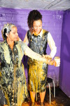 As the host, Rosemary graciously submits herself to be gunged first, and Maria gleefully sets about filling her nice blue jumpsuit with custard, both runny value custard in tins, to flow down and thoroughly wet the inside her Rosemary's outfit, and the thicker cartons of custard, to really fill the suit and sqush and squelch against her skin and the swimsuit she's wearing as underwear.