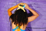 Friday completely fills and covers her suit in mixed mess, and also gives herself a thorough messy shampoo as well.