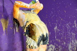 MyPieRogatrive gets plastered in mess, in denim shortalls