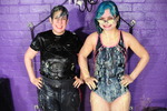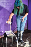 Cream poured down inside Daisy's swimsuit comes first, and soon enough it's soaking through the spandex and dripping down from between her legs. More cream, and then custard, is poured down the back of Daisy's suit, and then Virginia gets very hands-on, collecting the mess that's flooding out from the lower parts of Daisy's suit and spreading it all over her body. Once her suit and legs are completely slathered in creamy mess, Virginia fills Daisy's wellies, before drenching Daisy's blue hair in golden syrup, pouring custard over her face and down into her lap, and finally finishing her off with lots of milk poured over Daisy's head. By the end of the scene Daisy is just as drenched in mess as Virginia.