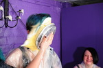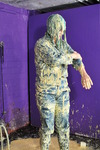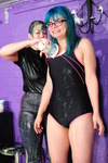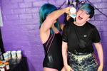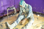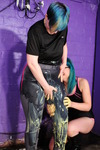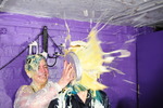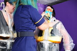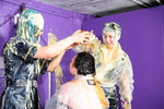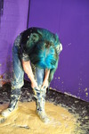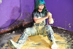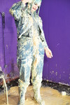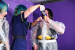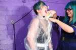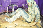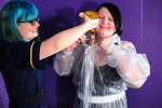 Our blue-haired artist Daisy invited her blue-haired friend Virginia to the Hall, so she could experience the joys of having her favourite running gear filled with mess while she is wearing it. Virginia had never been gunged before so you get to see her reactions as the mess flows in.