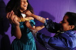 So, on starting, Friday immediately starts pouring cream into Teena's cleavage and down the front of her dress, even while Teena starts pouring cream into Friday's grey shorts.