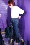 Veronica wears a dark blue knee length uniform skirt with pockets, a pale blue blouse, and green wellies, while Eliza wears a dark blue hospital cleaner's dress, and white lace-up plimsolls. They are supposed to be cleaning up the dungeon after their previous epic waterproofs set, however they decide just to totally gunge each other all over again for the fun of it.