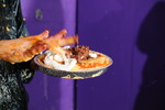 Both girls treat each other to fully mixed mess, custard, tomato soup, beans, they take it all.