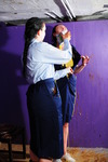 Veronica and Eliza cover each other's uniforms with food