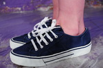 The outfits: Both girls are dressed in regulation uniforms, Chastity as junior staff, in smart blue blouse and dark blue knee length uniform skirt, worn over dark blue gym knickers and a black sports bra, and Kitty as student, in short green box-pleated skirt and pale green polo shirt over green gym knickers and black sports bra. Kitty wears basketball boots, Chastity wears plimsolls.